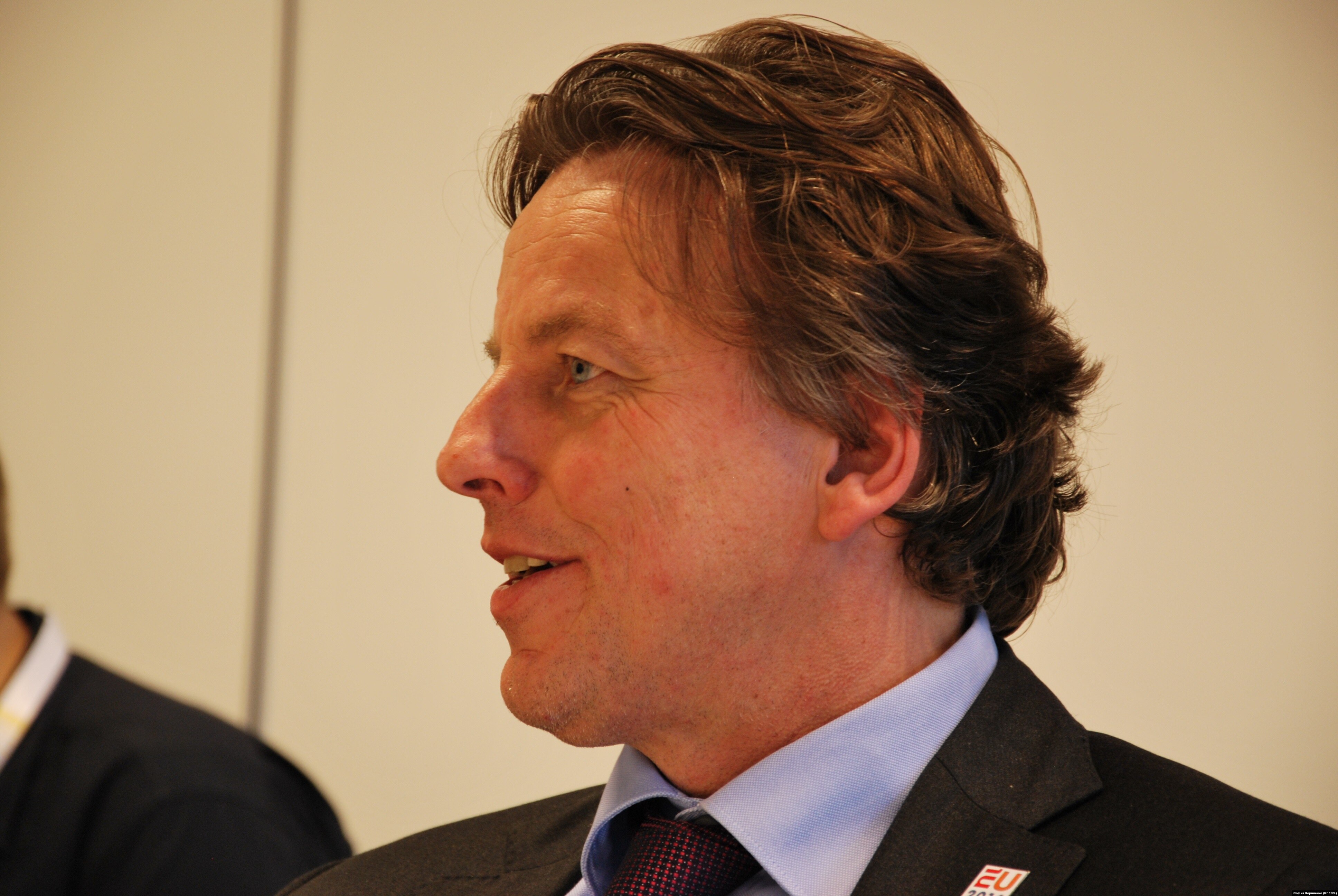 С января по июнь этого года Нидерланды председательствуют в ЕС, по этому поводу на амстердамском заливе Ай выстроили футуристический конгресс-центр. Сюда временно переместились переговорщики из 28 стран Евросоюза, здесь же в субботу 6 февраля министр иностранных дел Нидерландов Берт Кундерс (Партия труда, PvdA) в неформальной обстановке встретился с несколькими корреспондентами иностранных изданий.