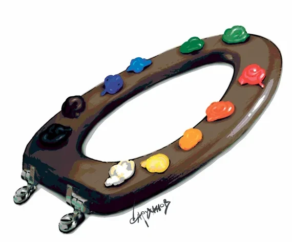 — Если присмотреться, то на крайней левой части картины изображен черный пудель, который крутится вокруг своего хвоста, именно в его сторону маршируют оппозиционеры. Это образ Мефистофеля из «Фауста». Пудель сидит на унитазе. Помните знаменитую фразу Путина: «Будем мочить в сортире»? На самом унитазе мелким шрифтом и на немецком языке приведена цитата из «Фауста» Гёте. Только специалист сможет ее разобрать. Смысл этой фразы, принадлежащей Мефистофелю, состоит в том, что законы устаревают, их надо менять. Но менять так, как ему, Мефистофелю, необходимо.