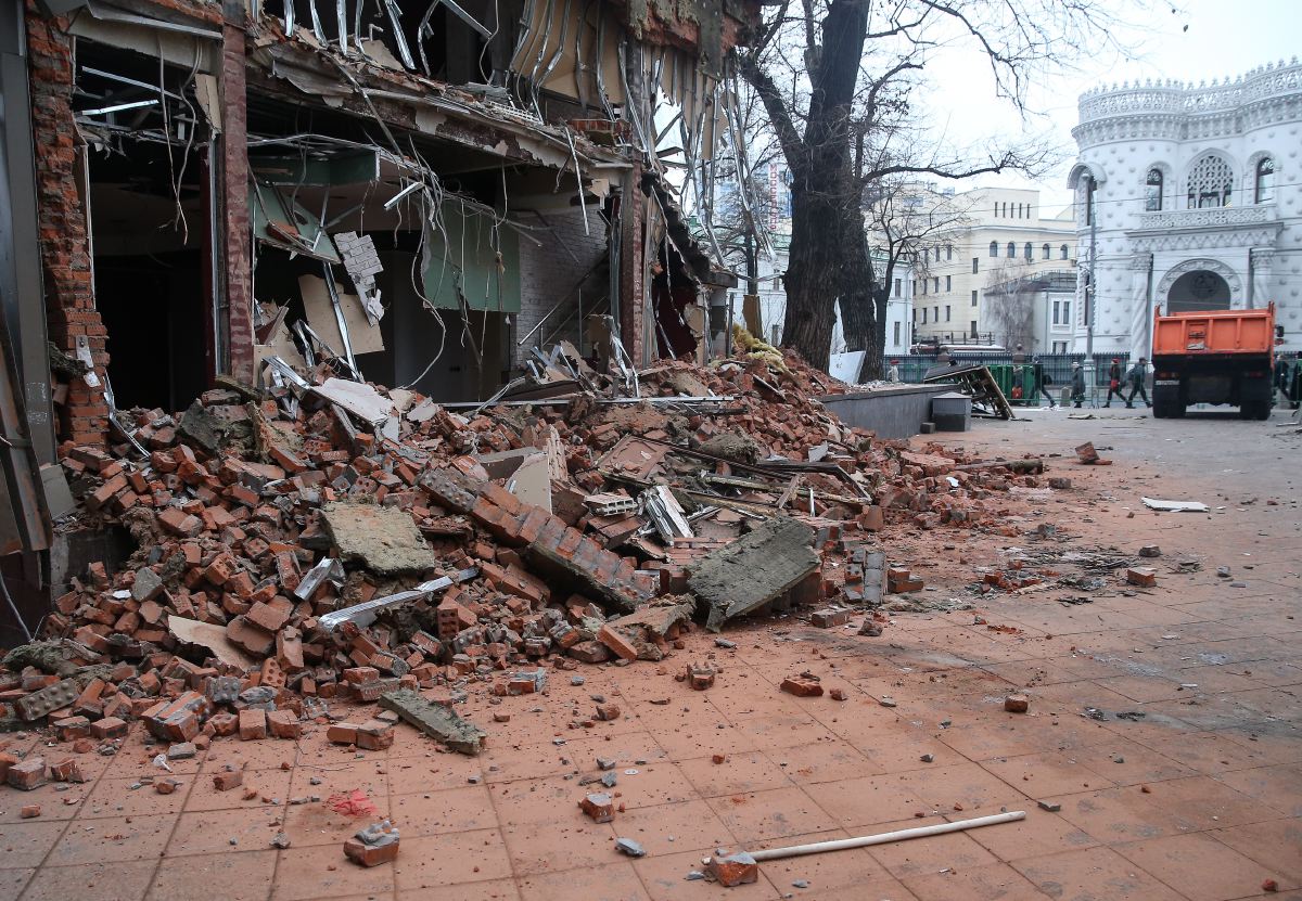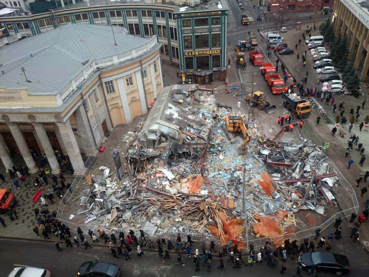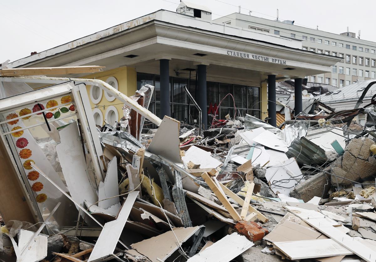 Разрушенные павильоны у станции метро «Чистые пруды».Фото: Александр Щербак/ТАСС