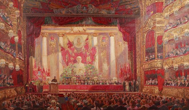 — Потерянное вы поколение. В наше время на обложках всех учебников Ленин был! — сказал Мединский и отправился рассматривать «Гимн Oктябрю», за которую Герасимов получил свою вторую сталинскую премию.