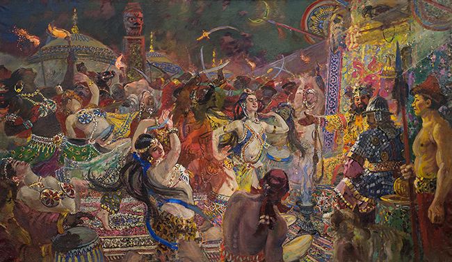 —Так это он и есть — неизвестный Герасимов. Никто, например, не видел его «Половецких плясок», которые он написал, уже освобожденный [от Сталина]. Это главная картина выставки!