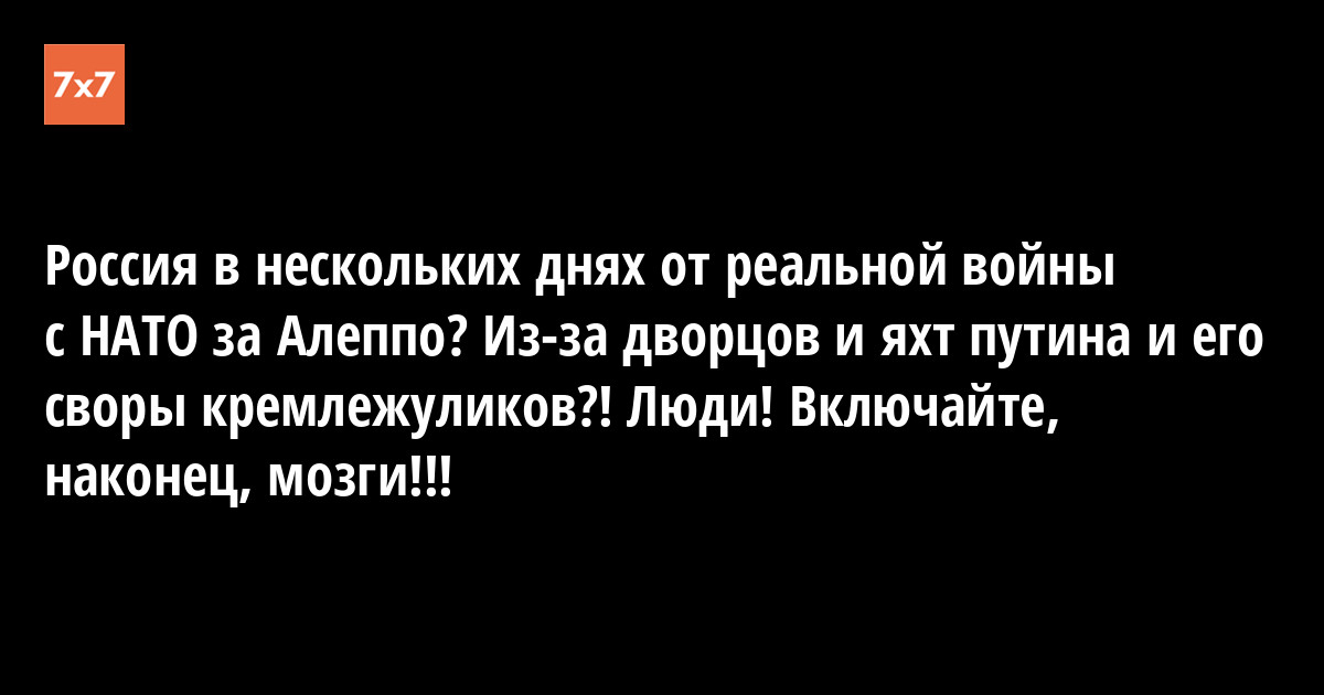 Россия в нескольких днях от реальной войны с НАТО за Алеппо? Из-за дворцов и яхт путина и его своры кремлежуликов?! Люди! Включайте, наконец, мозги!!!