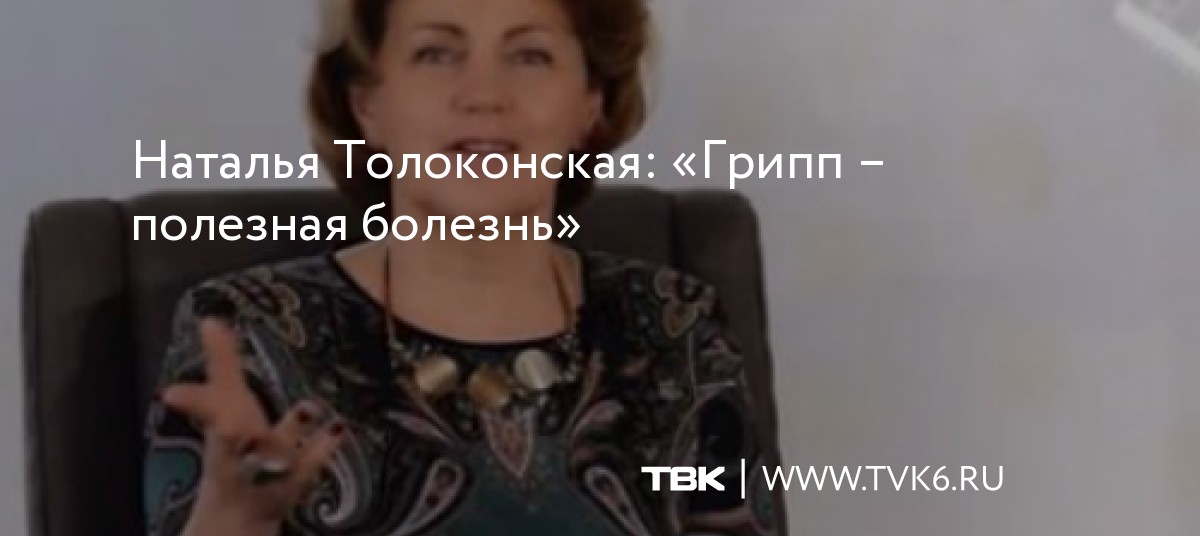 Жена губернатора Красноярского края Наталья Толоконская назвала грипп полезной для организма болезнью. Об этом она сказала в новой передаче на телеканале «Енисей».