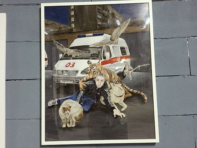 Много левее от входа на завод располагается «Варочный цех», в дверях которого появился арт-директор и с порога сказал, чтобы я поторапливалась, потому что ему надо по делам. И мы побежали, как банда аутсайдеров по Лувру. Я видела граффити, наполненные смыслами. Чаще всего — трагичными и протестными. Например, цветные разводы с зубами. В аннотации указано, что, например, содержания работы уличного художника Кирилла Лебедева никто не знает, пока тот не начнёт рисовать. Я бы сказала, что и в готовом произведении узреть смысл тоже будет не каждому под силу. Главное граффити гласит: «Благодарим заранее за попытку понимания». Этажом выше находится выставка картин молодых художников: полотна чаще всего изображали задумчивых гопников на фоне современности.