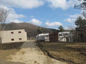 Мимо нас проехало несколько грузовых машин, а по пути следования мы видели нескольких строителей. Они с удивлением смотрели на «УАЗик», пытаясь, видимо, угадать в нас каких-нибудь начальников, но попыток вступить с нами в контакт не предпринимали. На спуске с перевала асфальт закончился, и по ведущей дальше бетонке мы подкатили прямо к тому самому зданию, которое мы видели на фотографиях, размещенных на сайте «Руликс» (ссылка, впрочем, по какой-то причине уже не работает).