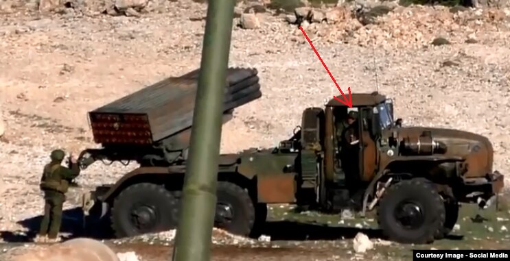 Активисты нашли в интернете несколько фотографий и видео, время и место съемки которых свидетельствует: наступление войск Асада на севере Сирии осуществляется при участи российских реактивных систем залпового огня (РСЗО) "Град" и "Смерч", а также гаубиц "Мста-Б". Военный персонал, замеченный на этих фотографиях и видео, – также российский. Как отмечается в расследовании, это видно по характерным кокардам на головных уборах, которых нет на военной форме солдат сирийской правительственной армии.