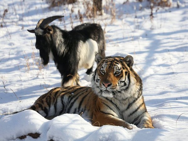 Тигр Амур и козел Тимур встретились после ссоры
