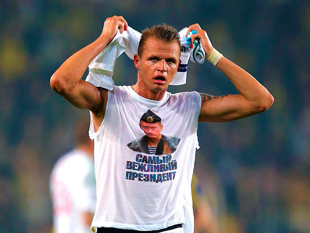 Московский футбольный клуб "Локомотив" оштрафовал на 300 тысяч евро полузащитника Дмитрия Тарасова, который после матча с турецким "Фенербахче" в Стамбуле появился в футболке с изображением Владимира Путина и подписью "самый вежливый президент", сообщил агентству "Р-Спорт" источник, знакомый с ситуацией.