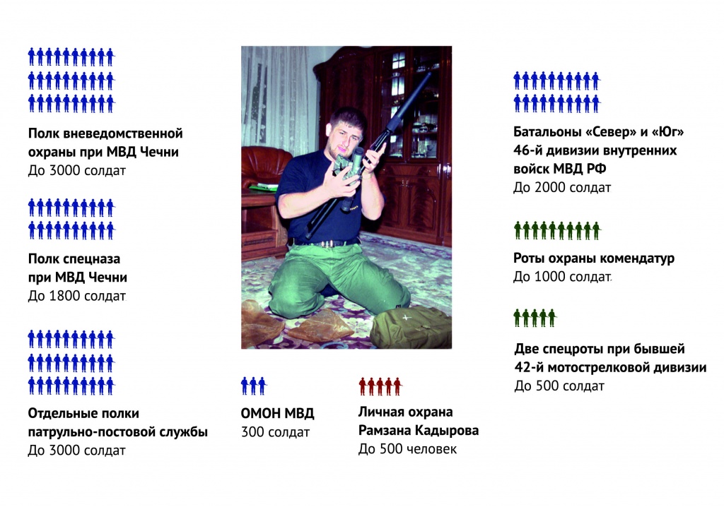 Особую роль в ее структуре играет «кадыровский спецназ». Подготовкой его бойцов занимается опытный офицер российских спецслужб Даниил Мартынов. В 2013 году после ухода из спецподразделения «Альфа» он был назначен помощником главы Чечни. Бывшие коллеги Мартынова называют его переход на новую работу предательством. Они всерьез опасаются, что подготовленные российским офицером боевики снова направят оружие против российских же солдат, как это было в 1990-е и начале 2000-х годов.