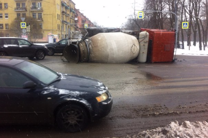 На Песочной набережной перевернулась бетономешалка. Об этом сообщают очевидцы в группе «ДТП и ЧП» в социальной сети «ВКонтакте». Бетон вылился на проезжую часть. На месте ДТП возникла пробка. Затруднено движение и автомобилей, и общественного транспорта. Свидетели аварии сообщают, что пострадавших нет.