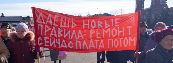 Плакат митинга в Сердобске. Пензенская область, 8 февраля 2016 г. Фото: Пресс-служба Пензенского обкома КПРФ Генеральная прокуратура посчитала нарушающим конституцию введение обязательных сборов за капитальный ремонт многоквартирных домов. Соответствующий отзыв был направлен в Конституционный суд в связи с жалобой группы депутатов Государственной Думы по поводу этой нормы.