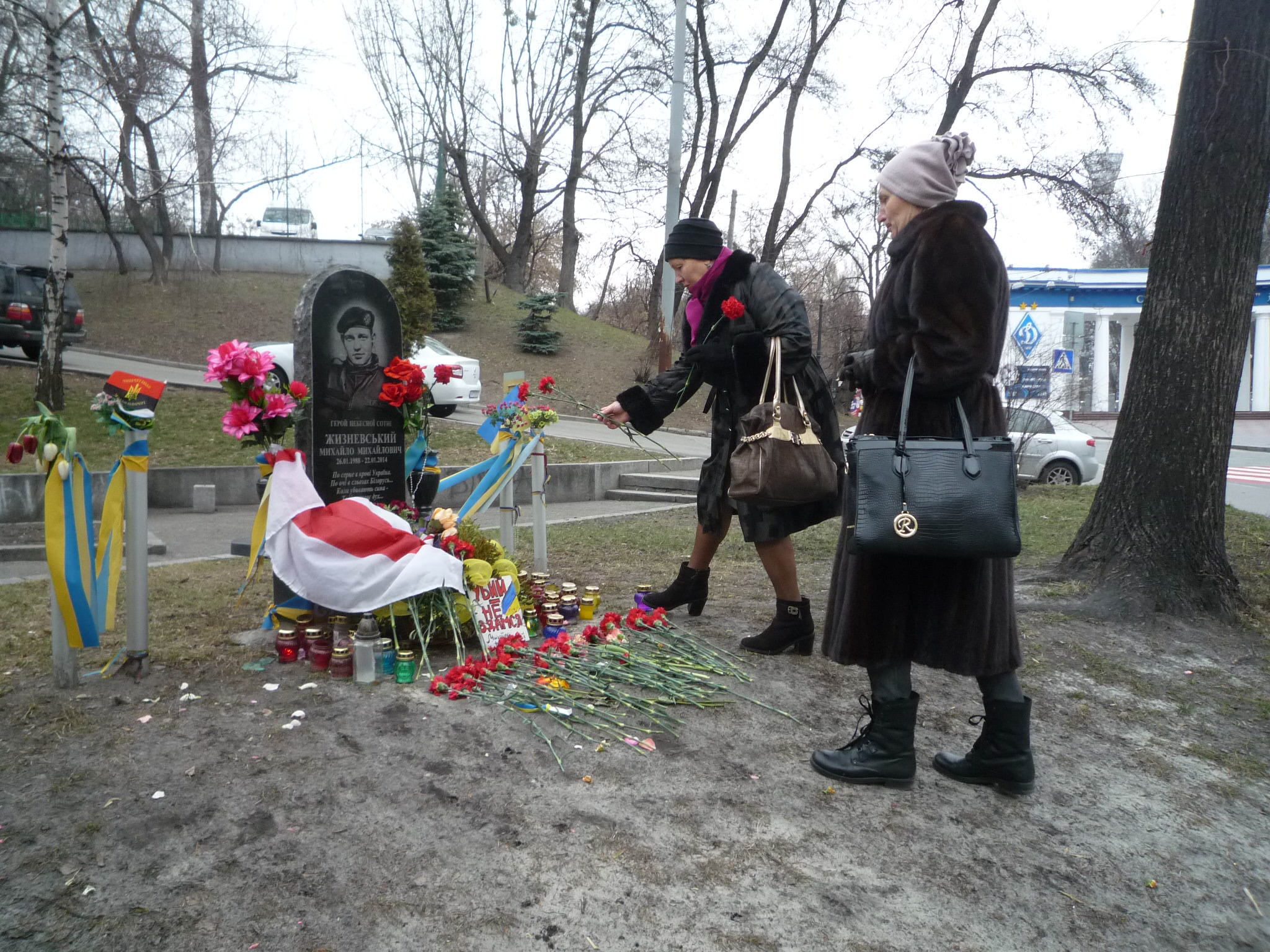 Люди продолжают приносить цветы и свечи к памятным знакам, установленным на улице Институтская - в местах гибели активистов Майдана.