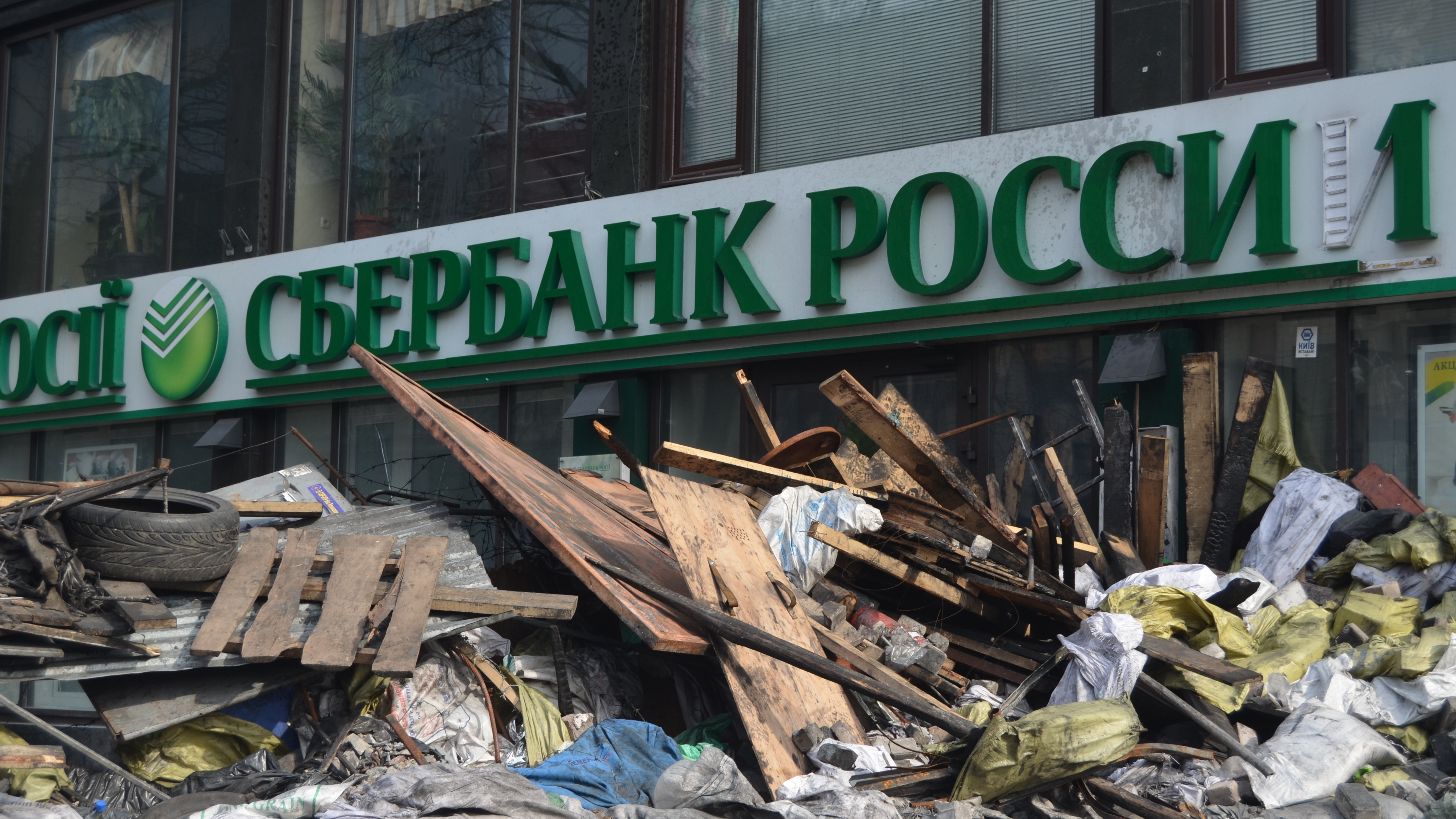 В субботу в Киеве, после акции памяти погибших на Майдане в феврале 2014 года, демонстранты забросали камнями филиалы российского Сбербанка и Альфа-банка. В офисах были частично повреждены мебель и техника. По факту произошедшего возбуждены уголовные дела.