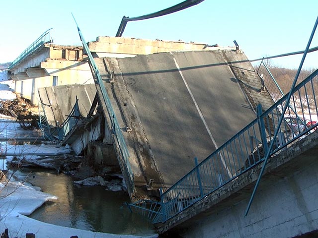Отметим, по информации департамента дорожного хозяйства и транспорта Приморья и ГИБДД, во время обрушения на мосту находились один большегрузный и один легковой автомобиль. "Мост не был предназначен для проезда многотонной техники. Водитель транспорта решил сократить дорогу и нарушил путевой лист с предписанным маршрутом движения. В результате мостовая конструкция начала рушиться уже под его колесами", - отмечалось в сообщении на сайте краевой администрации.
