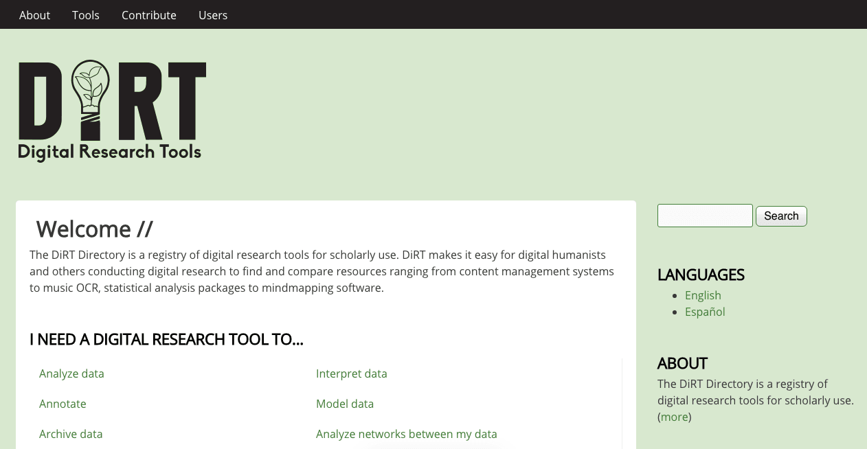 DiRT (Digital Research Tools) – это каталог цифровых инструментов для использования в научных исследованиях. С помощью DiRT можно находить и анализировать ресурсы в Интернете.