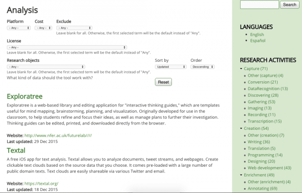 Каталог DiRT собирает информацию о цифровых инструментах для научных исследований и пополняется кураторами. В ближайшее время планируется создание API и интеграция с другими проектами.