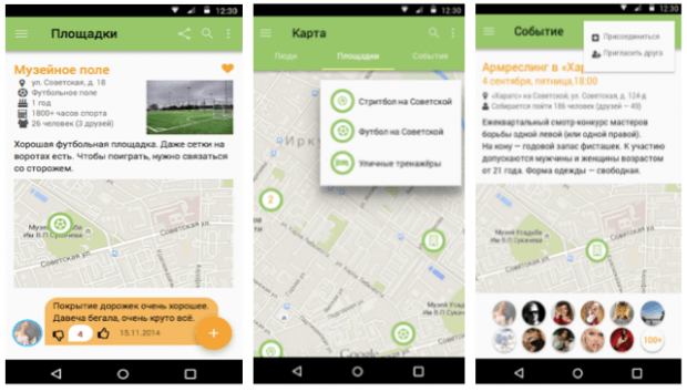 - карта спортивных мероприятий. Можно будет собрать друзей, чтобы поиграть вместе в футбол или присоединиться к другому мероприятию.