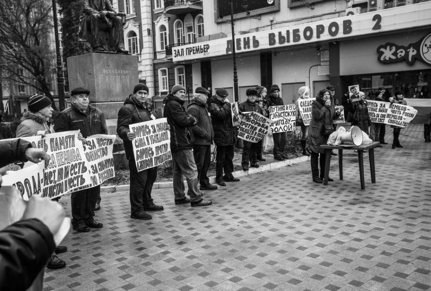 Акция на Никитинской состоялась, несмотря на нападение. Воронежцы почтили память Бориса Немцова минутой молчания и словами солидарности семье убитого политика.