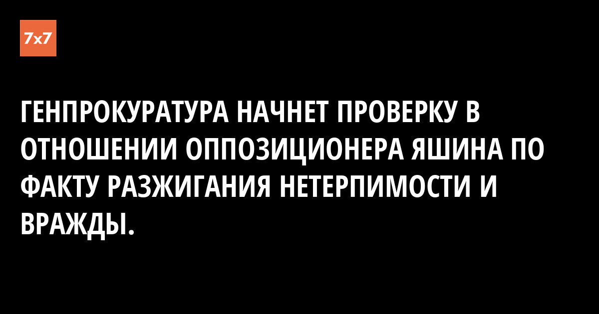 ГЕНПРОКУРАТУРА НАЧНЕТ ПРОВЕРКУ В ОТНОШЕНИИ ОППОЗИЦИОНЕРА ЯШИНА ПО ФАКТУ РАЗЖИГАНИЯ НЕТЕРПИМОСТИ И ВРАЖДЫ.