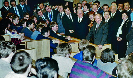 Генеральный секретарь ЦК КПСС Михаил Горбачев на встрече со студентами Таллинского технического университета, Таллин, Эстония, СССР, 17 октября 1986 года