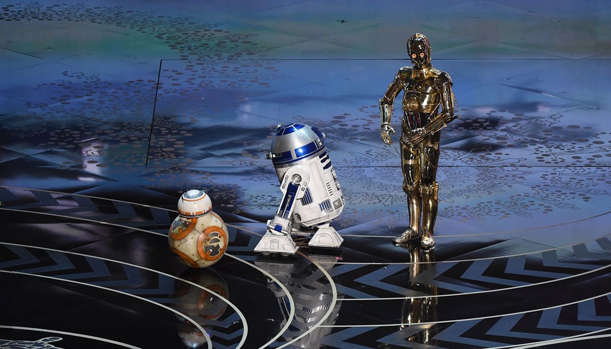 Одним из самых неожиданных моментов «Оскара-2016» стало появление на сцене дроидов из «Звездных войн» (к слову, седьмой эпизод не получил ни одной награды). C-3PO, R2-D2 и BB-8 покрасовались перед гостями, а также пофотографировались со звездами за сценой.