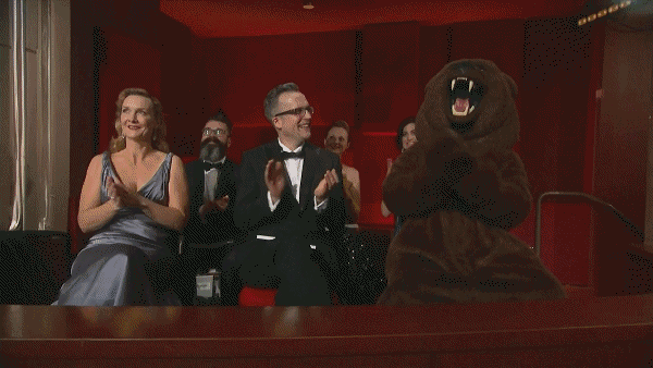 Еще один необычный гость церемонии — медведь из «Выжившего» — сидел в зале.