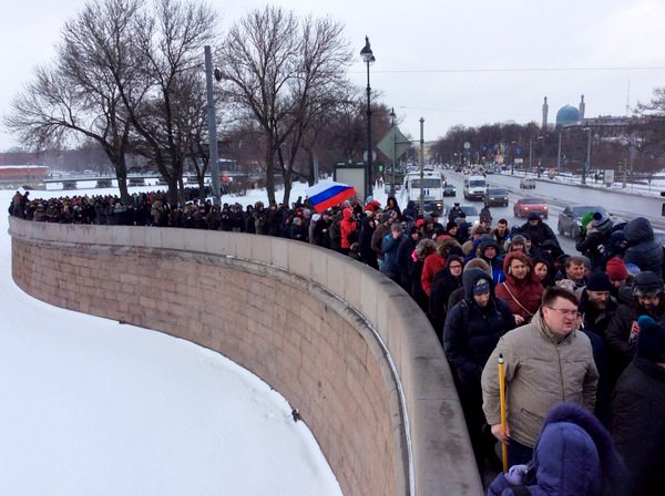 Марш памяти Бориса Немцова в Петербурге 27 февраля 2016 года. Фото: ПАРНАС Акции памяти прошли и во многих других городах России. День памяти Немцова в Санкт-Петербурге собрал две тысячи человек, в Нижнем Новгороде на митинг вышли 400 человек. В Ярославле была открыта мемориальная табличка на доме, где жил Борис Немцов. В большинстве акций участие приняли не более ста человек.