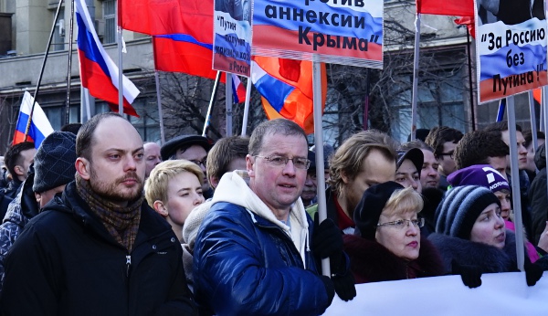Владимир Кара-Мурза (слева) среди участников шествия. Фото: ПАРНАС Возглавили колонну шествия представители оппозиции: Михаил Касьянов, Илья Яшин, Геннадий Гудков, Ирина Прохорова, Владимир Милов, Владимир Кара-Мурза, а также сын Бориса Немцова Антон. В марше приняли участие глава Фонда борьбы с коррупцией Алексей Навальный, его коллега Леонид Волков, основатель партии «Яблоко» Григорий Явлинский. Примечательно, что Яшин и Касьянов были на митинге при охране.