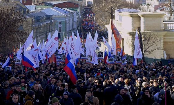 Шествие памяти Бориса Немцова в Москве 27 февраля 2016 года. Фото: Партия народной свободы (ПАРНАС) В субботу в Москве и ряде других городов прошли акции, посвященные памяти убитого год назад политика Бориса Немцова.