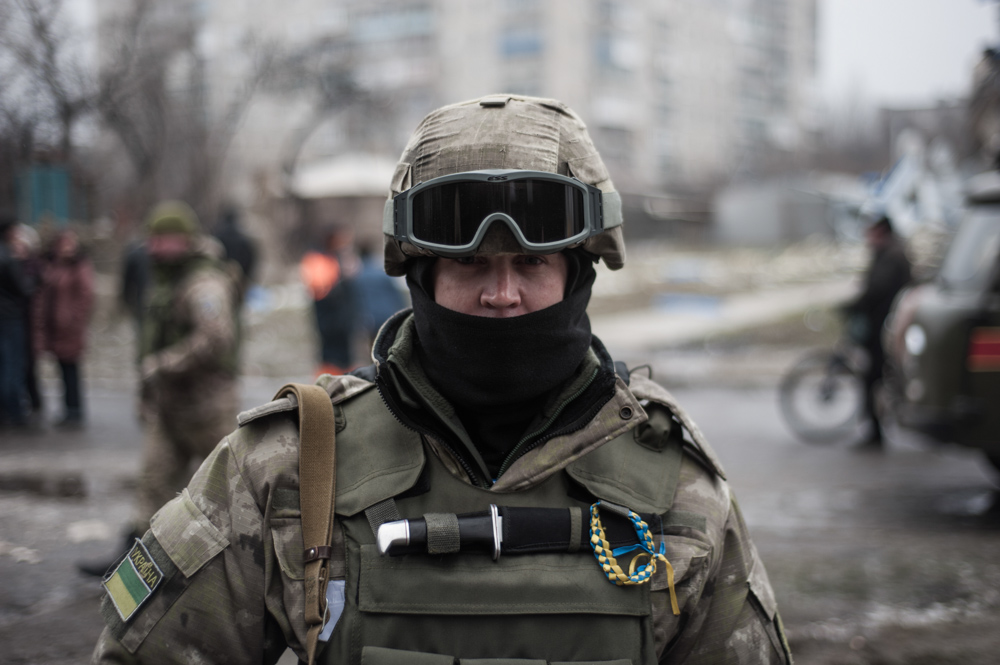 Украинский военнослужащий в зоне конфликта в Донбассе
