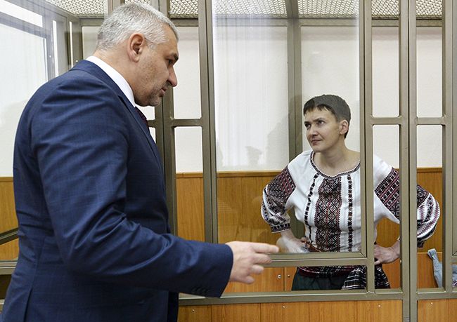 Савченко на процессе защищали три адвоката — Илья Новиков, Марк Фейгин и Николай Полозов. Как написала «Медузе» сама Савченко, первый «предоставил сильную процессуальную сторону защиты», а Фейгин и Полозов занимались в основном публичным сопровождением процесса, «вывели дело на мировой уровень и открыто освещали его в течение всего времени».