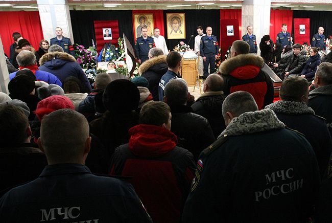 Фото: Максим Григорьев / ТАСС / Scanpix Церемония прощания с горноспасателями, погибшими 28 февраля при очередном взрыве на «Северной», 4 марта 2016 года