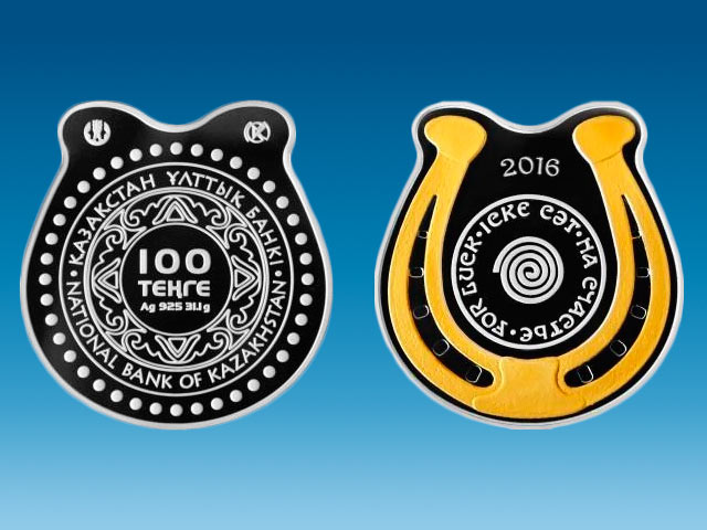 Национальный банк Казахстана с 4 марта 2016 года выпустил в обращение серебряные монеты под названием "Подкова" номиналом 100 тенге.