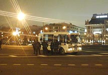 Полицейские отреагировали мгновенно. Вера Лаврешина, Михаил Удимов, Елена Захарова, Александр Макаров и Василий Недопекин были задержаны. В ходе задержания они выкрикивали: "Свободу Надежде Савченко!", "Путин - палач", "Путин - военный преступник" и "Путин будет казнен". Всех задержанных доставили в ОВД "Мещанский".