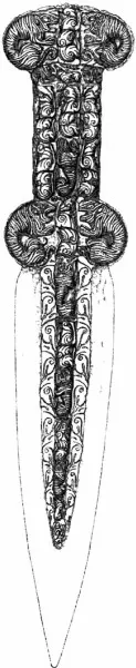 Из курганов Южной Сибири происходит целая серия железных кинжалов традиционных «скифских» форм в скифском зверином стиле. Согласно недавним исследованиям, они, скорее всего, литые, а не кованые. Если так, , то изготовлены они могли быть только китайскими ремесленниками, поскольку в то время только китайцам был известен способ выплавки чугуна.