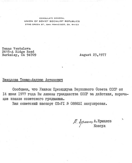 — Родственники за границей, объединение семей — вот такие вещи. Евреи могли уезжать в Израиль, хотя и не все, но я не еврей. Но потом, услышав, что я написал такое письмо, мои знакомые на Западе, в частности, Иосиф Бродский, уехавший в 1972-м, и его друг Чеслав Милош, польский поэт, вильнюсский человек, который интересовался тем, что в Вильнюсе происходит, это письмо прочли, заинтересовались моей судьбой, стали шуметь, печатать про меня в разных газетах, говорить об этом по радио, и Милош мне прислал приглашение в университет Беркли — на один семестр, преподавать. Я с этим приглашением попробовал опять пойти в ОВИР, мне сказали: не смешите народ, разрешение преподавать — это чисто ведомственное дело, это проходит через служебные инстанции, к которым вы не имеете отношения, поэтому идите подальше. Ну, я ушел подальше и стал откровенно вести себя совершенно как диссидент.