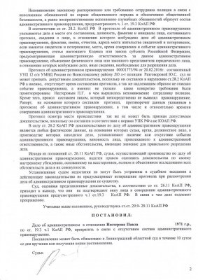 Двоим последним также вменялось неповиновение законным требованиям сотрудников полиции (ч. 1 ст. 19.3 КоАП), но производство по этой статье в отношении обоих было прекращено.