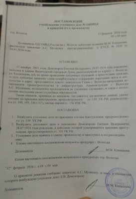 Публикация о возбуждении дела совпала по времени с заявлением Доможирова о намерении баллотироваться в Вологодскую городскую думу и законодательное собрание области.