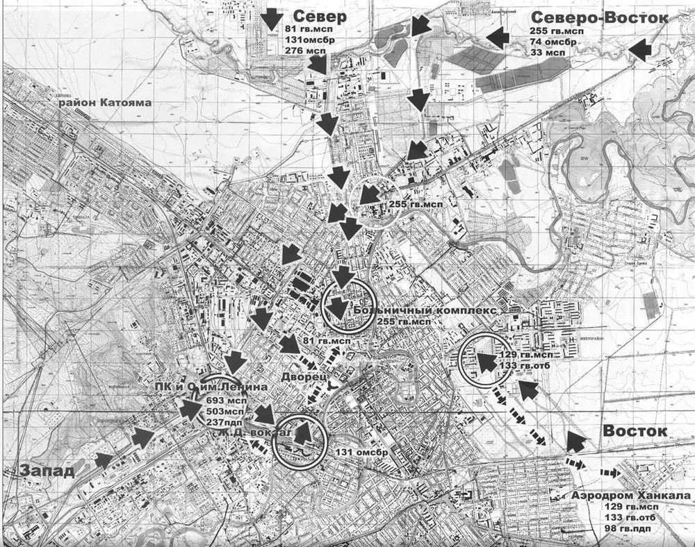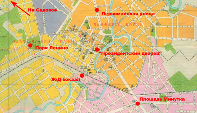 План Грозного 1990 года с местами, упомянутыми в исследовании