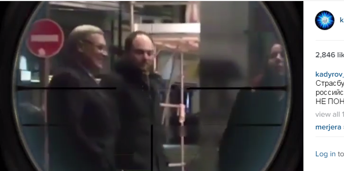 На видео, которое выложил в Instagram 31 января Рамзан Кадыров, Михаил Касьянов и Владимир Кара-Мурза-младший изображены в перекрестье снайперского прицела, и сопровождалось подписью : «Касьянов приехал в Страсбург за деньгами для российской оппозиции. Кто не понял, тот поймет!».