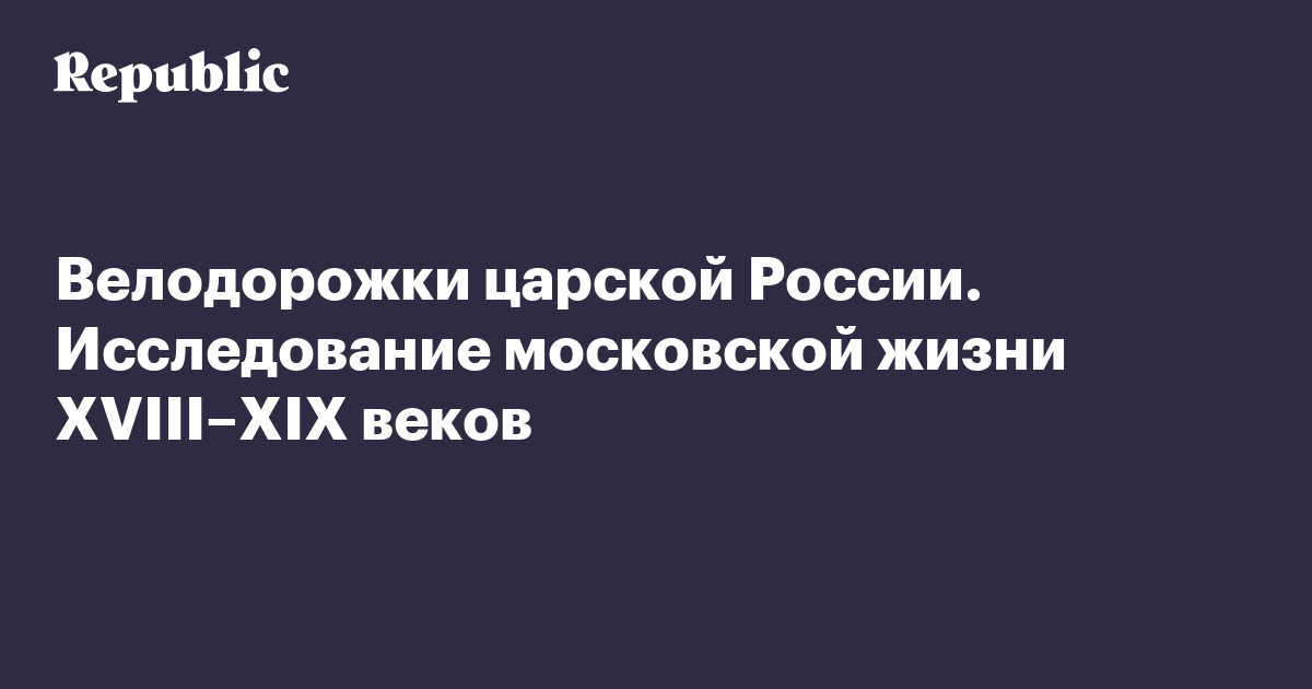 Велодорожки царской России. Исследование московской жизни XVIII–XIX веков