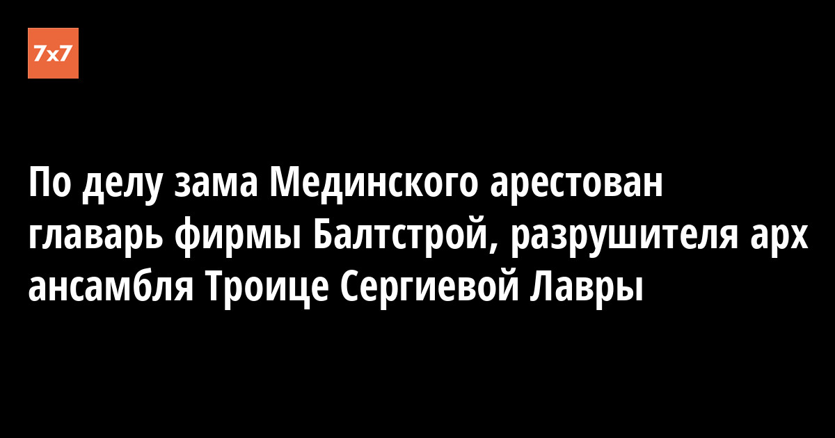 По делу зама Мединского арестован главарь фирмы Балтстрой, разрушителя арх ансамбля Троице Сергиевой Лавры