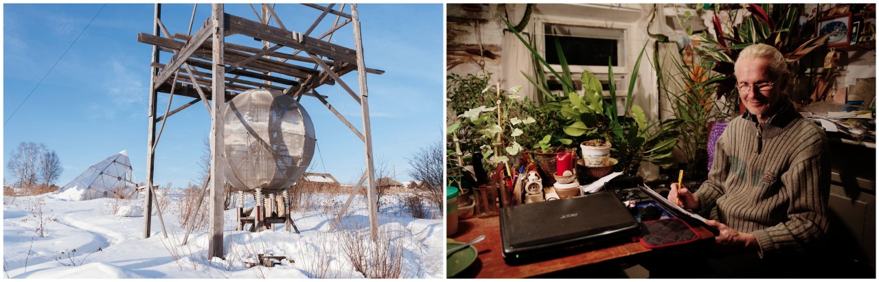 Во дворе у Попова стоит электростанция размером с двухэтажный дом. Это сетчатый шар, покоящийся на четырех изоляторах внутри деревянного каркаса. Электроэнергию конструкция пока не вырабатывает.