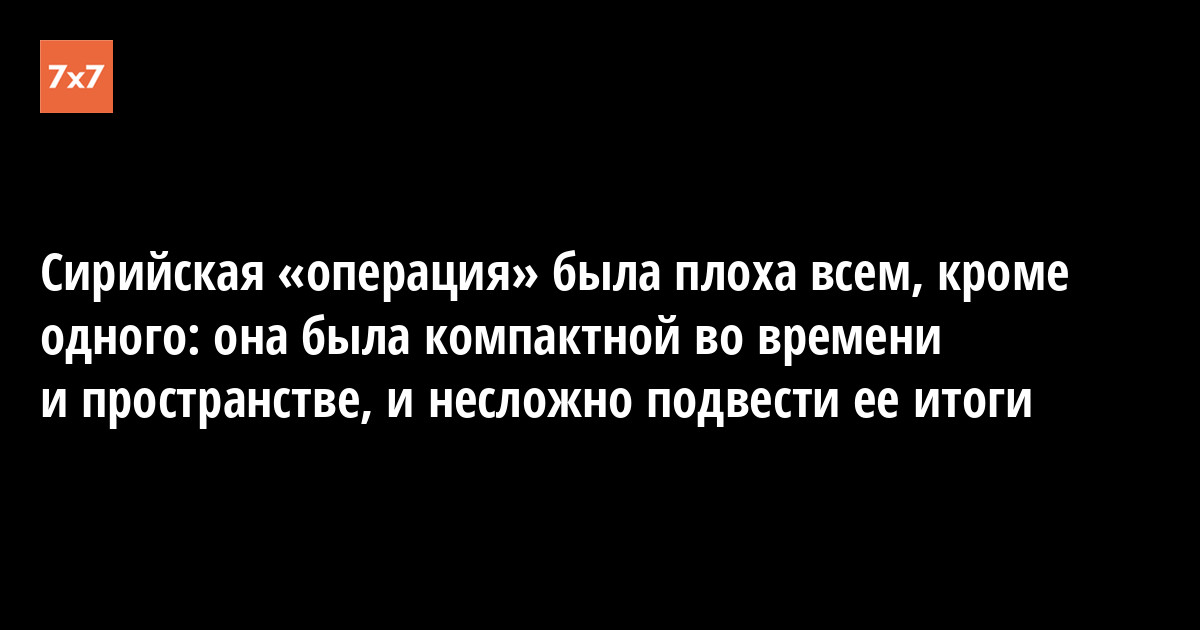 Сирийская «операция» была плоха всем, кроме одного: она была компактной во времени и пространстве, и несложно подвести её итоги.