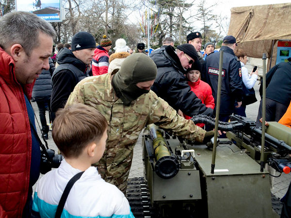 Информационно-агитационная акция «Военная служба по контракту — Твой выбор!» в Севастополе 24 февраля 2016 Фото: МО РФ Угроза терроризма исходит, прежде всего, от «Исламского государства» (ИГ, террористическая организация, запрещена в РФ). Здесь задача в том, чтобы пресечь деятельность организации в Сирии и Ираке, а также прекратить ее распространение на другие территории (речь идет об Афганистане и странах Африки).