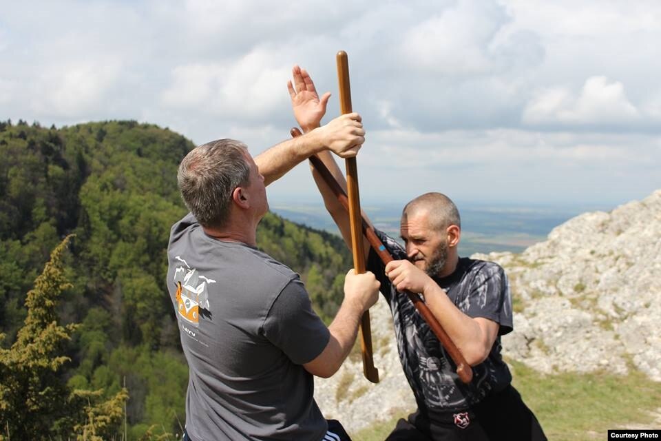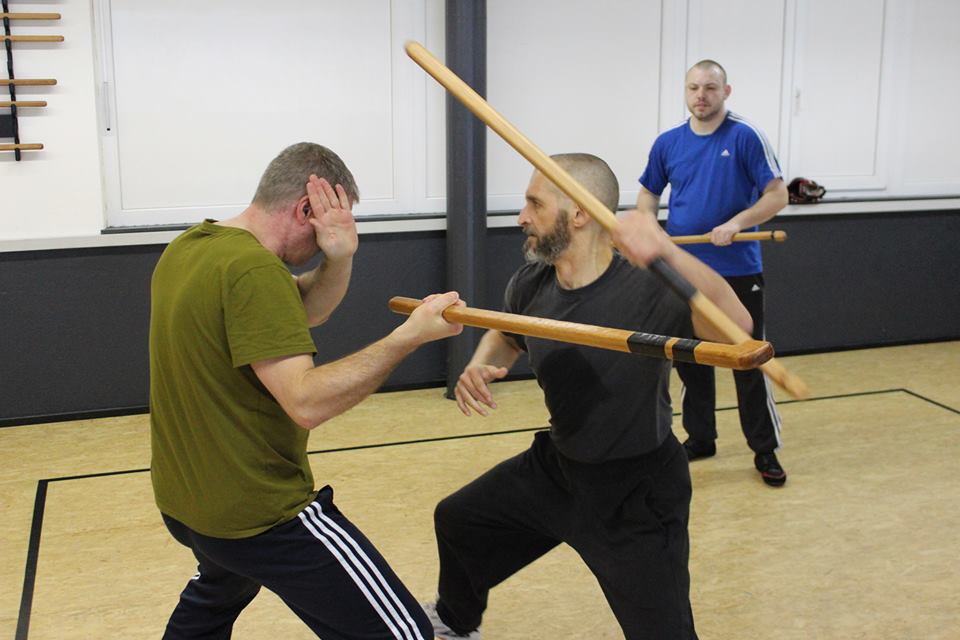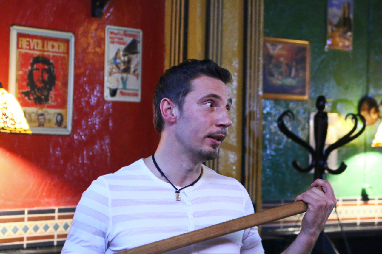 "Ударил по затылку и пошел закапывать", – мрачно шутит инструктор по ирландскому палочному бою Дмитрий Хакимов, демонстрируя серию ударов во время мастер-класса в Москве. Оба приехавшие из Петербурга тренера – Дмитрий Хакимов и его коллега Дмитрий Старков – даже во время семинара не расстаются с твидовыми кепками, что придает им вид ирландских хулиганов. Да и само место проведения тренинга – спортзал в малоэтажном квартале Марьиной Рощи – навевает ассоциации с рабочими районами Дублина.