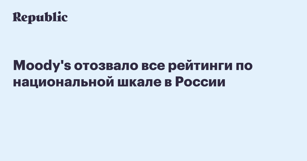 Международное рейтинговое агентство Moody's отозвало все рейтинги по национальной шкале в России, передает «Интерфакс» сообщение компании.