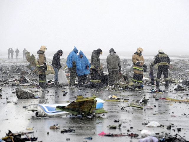 В субботу в 3:42 мск в аэропорту Ростова-на-Дону при повторном заходе на посадку в сложных метеоусловиях (сильный боковой ветер и дождь) потерпел крушение самолет Boeing 737-800 авиакомпании FlyDubai, выполнявший рейс FZ 981 из Дубая. На борту самолета находились 62 человека. Все они погибли. Большинство жертв катастрофы - россияне.