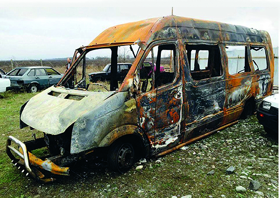 Автобус, купленный водителем в кредит, не подлежит восстановлению, Магас, 13 марта 2016 года. Фото: Денис Синяков/Медиазона