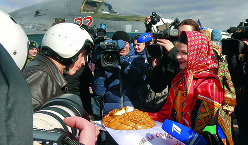 На военном аэродроме в Бутурлиновке (Воронежская область) встречают первую группу летчиков, вернувшихся из Сирии,15 марта 2016 года